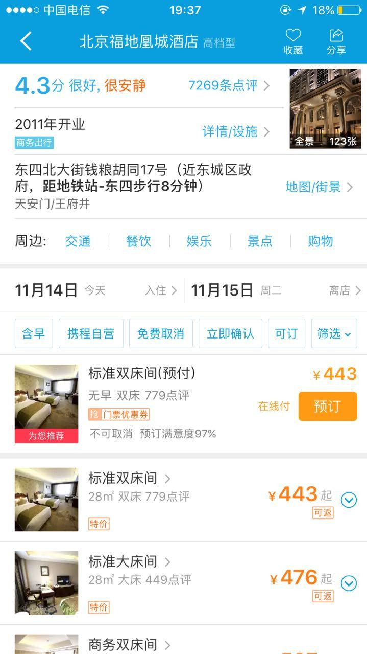 另外,“你再搜索一下北京福地皇城,酒店在东四,商圈却划到了王府井天安门,你看看差哪儿去了。”知情人士说到。“只要佣金高给携程的利益好,它都会帮忙改商圈,最主要的是携程的抓取规则和商圈划分现在成了行业的标准,携程起了一个非常不好的带头作用,这也可能导致了很多消费者明明想住在三里屯就可能去了石佛营,甚至出现找不到酒店的情况。”